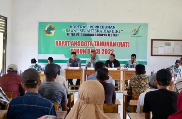 Koperasi Perkebunan Bawal Sejahtera Mandiri (BSM) binaan PT Gunajaya Harapan Lestari (BGA Grup) menggelar rapat akhir tahun buku 2022. Rapat perdana tersebut berlangsung di gedung SMPN 09 Satu Atap Kendawangan, Sabtu (18/3).