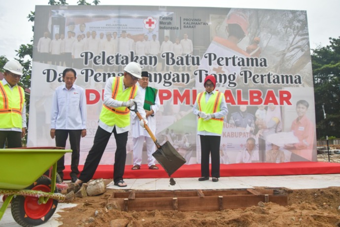 MARKAS PMI: Gubernur Sutarmidji beserta istri yang juga Ketua PMI Kalbar Lismaryani saat peletakan batu pertama pembangunan Gedung Markas PMI Kalbar di Jalan Letjen Sutoyo, Kamis (6/4) pagi. BIRO APDIM KALBAR FOR PONTIANAK POST