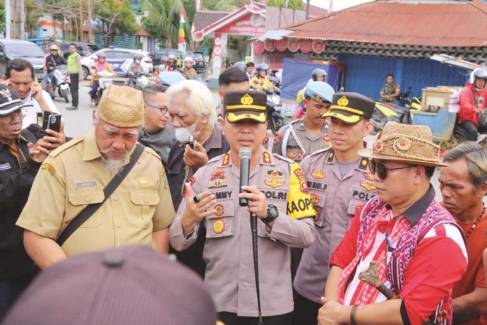 Masyarakat yang berasal dari berbagai organisasi di Kabupaten Sintang menggelar aksi damai di Pertamina Sintang, Selasa (2/5).