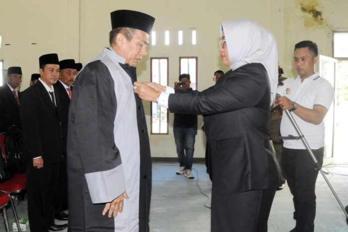 Bupati Mempawah Erlina, memimpin pengukuhan dan pengambilan sumpah dewan hakim MTQ XXXIV Kabupaten Mempawah, Rabu (5/7) siang di gedung serbaguna Kantor Camat Sungai Pinyuh.