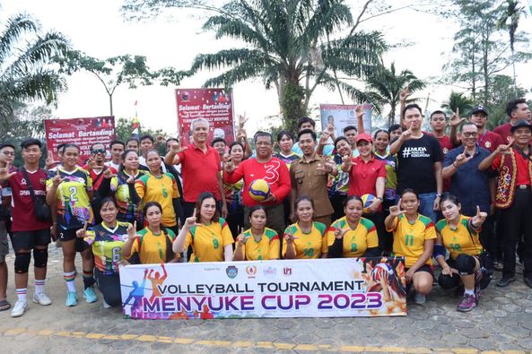 Ketua DPRD Kabupaten Landak Heri Saman, membuka Turnamen Bola Voli Menyuke Cup yang memeriahkan Hari Ulang Tahun (HUT) ke-78 Republik Indonesia (RI) pada Selasa (1/8).